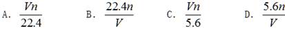 2、选择题 在标准状况下,若VL甲烷中含有的氢原子个数为n,则阿伏加德罗常数可表示为( )
