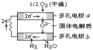 5、选择题 固体氧化物燃料电池是由美国西屋(Westinghouse)公司研制开发的。它以固体氧化锆-氧化钇为电解质,这种固体电解质在高温下允许氧离子(O2-)在其间通过。该电池的工作原理如图所示,其中多孔电极a、b均不参与电极反应。下列判断正确的是