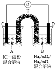 3、填空题 如图所示是一套电化学实验装置,图中C、D均为铂电极,U为盐桥,G是灵敏电流计,其指针总是偏向电源正极。