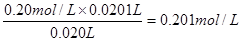 (3)两次实验中消耗盐酸的体积分别是20.20ml和20.00ml,所以平均值为2010ml,因此氢氧化钠的浓度是
