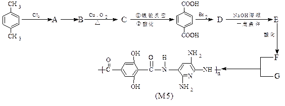 5、填空题 M5纤维是美国开发的一种超高性能纤维,下面是M5纤维的合成路线(有些反应未注明条件):