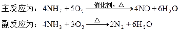 4、计算题 氨在高温下进行催化氧化以制取NO不考虑NO与O2反应)时,其