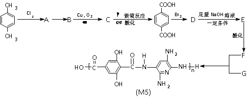 5、填空题 (13分) M5纤维是美国开发的一种超高性能纤维,下面是以对二甲苯为原料合成M5纤维的合成路线(有些反应未注条件):请回答: