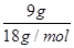 ③水的质量为9mL×1g·mL-1=9g,其物质的量为=0.5mol,则原子数为0.5×2×NA=1NA,