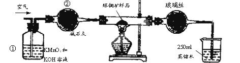 3、填空题 (15分)工业上为了测定辉铜矿(主要成分是Cu2S)中Cu2S的质量分数,设计了如图装置。实验时按如下步骤操作: