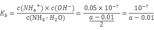 B.25℃时,将a mo1·L-l氨水与0.01 moI·L-1盐酸等体积混合,反应完全时溶液中c(NH4+)=c(C1-),用含a 的代数式表示NH3·H2O的电离常数