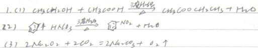 2、填空题 (6分)(1)写出乙醇和乙酸反应的化学反应方程式__________________;