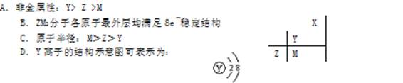 1、选择题 右图为短周期的一部分,推断关于Y、Z、M的说法正确的是?(?)