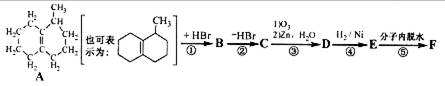 3、填空题 (10分)物质A(C11H18)是一种不饱和烃,它广泛存在于自然界中,也是重要的有机合成中间体之一。某化学实验小组从A经反应①到⑤完成了环醚F的合成工作: