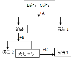 1、填空题 某溶液中含有Ba2+,Cu2+,Ag+,现用NaOH溶液.盐酸和Na2SO4溶液将这三种离子逐一沉淀分离。其流程图如下(写出最佳答案)