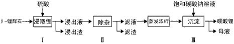 4、填空题  碳酸锂广泛应用于陶瓷和医药等领域。以-锂辉石(主要成分为Li2O·Al2O3·4SiO2)为原材料制备
