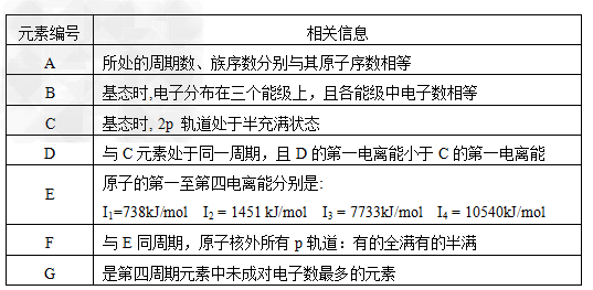3、推断题 有A、B、C 、D、E、F、G 六种前四周期元素,原子序数依次增大,其相关信息如下表: