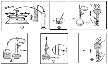 (5)由表中离子组成的NaOH是常用的试剂,下图是配置一定物质的量浓度的氢氧化钠溶液的操作图示,整个过程分为①②③④⑤⑥六个单元。