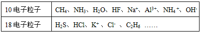 4、填空题 下表列出了部分常见含有10电子和18电子的粒子,回答下列问题。