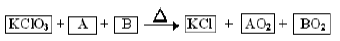 (2)反应中A和B的质量比为3:4,则C、S物质的量之比为2:1,依据原子守恒和化合价的变化,配平可得化学方程式:KClO3+2C+S=2KCl+2CO2+SO2,所以n(KClO3):n(CO2)=1:1。