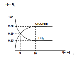 (2)460℃时,在4L密闭容器中充入1mol CO2和3.25mol H2,在一定条件下反应,测得CO2和CH3OH(g)的物质的量随时间的变化关系如图所示。