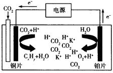 (3)科学家研究发现,还可以用电催化法将CO2还原为碳氢化合物。原理如下图所示(电解质溶液是一种钾盐)。若CxHy为C2H4,则该原理的总反应式为为: 。