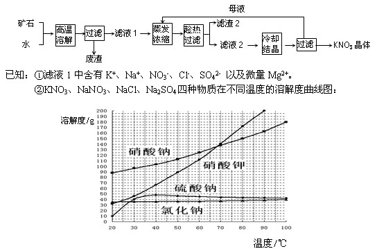 2、实验题  (16分)工业上常采用天然矿物法生产硝酸钾,工艺流程如下图所示,