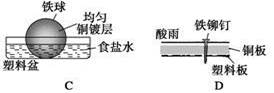 3、选择题 相同材质的铁在图中四种情况下最不易被腐蚀的是