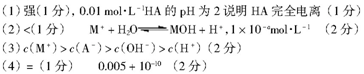 (1)由图中信息可知HA为 酸(填“强”或 “弱”),理由是 。