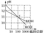 3、选择题 MOH和ROH两种一元碱的溶液分别加水稀释时,pH变化如右图所示。下列叙述中正确的是
