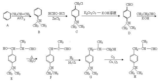 5、填空题 兔耳草醛H是一种重要的香料,主要用于食品、化妆品等工业中。用有机物A为原料可以合成兔耳草醛H,其合成路线如图所示: