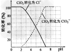 (4)吸收塔内ClO2随着还原剂的不同和溶液酸碱性的变化可被还原为ClO2-或Cl-。ClO2被S2-还原为ClO2-、Cl-的转化率与溶液pH的关系如图所示。请写出pH≤2时ClO2与S2-反应的离子方程式: