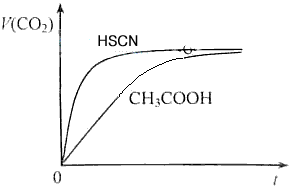 (1)25℃时,将20mL 0.10 mol/L CH3COOH溶液和20mL 0.10 mol/LHSCN溶液分别与20mL 0.10 mol/LNaHCO3溶液混合,实验测得产生的气体体积(V)随时间(t)变化的示意图为图2所示: