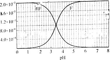 (2)HF电离平衡常数Ka= c(H+)·c(F-)/ c(HF),其中c(H+)、 c(F-)、 c(HF)都是电离达到平衡时的浓度,选择中间段图像求解。根据图像:PH=4时,c(H+)=10-4, c(F-)=1.6×10-3、 c(HF)=4.0×10-4。Ka=0.4×10-3。