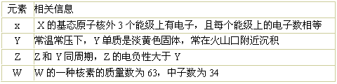 4、填空题 X、Y、Z、W是元素周期表前四周期中的四种常见元素,其相关信息如下表: