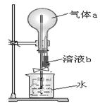 5、选择题 如图所示,在干燥的圆底烧瓶中充满某气体a,胶头滴管中吸有少量液体b,当把溶液b挤进烧瓶后,打开止水夹不能形成“喷泉”的组合是