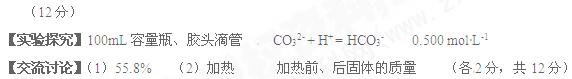 2、实验题 (12分)某化学研究性学习小组对某Na2CO3和NaHCO3的混合溶液(以下简称“样品溶液”)的组成进行探究。请按要求完成下列研究报告。