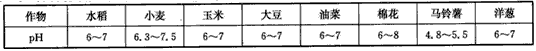 2、填空题 在农业生产中,各种作物生长都对土壤的DH范围有一定的要求(见下表)