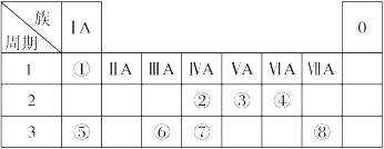 4、填空题 下表为元素周期表的一部分,请参照元素①~⑧在表中的位置,回答下列问题: