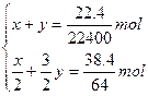 解法2(列方程求解):假设生成NO2物质的量为x,NO物质的量为y。