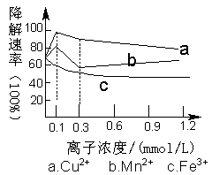 | D | 450 | 2 | 6 | 无 5、选择题 一定条件下,Cu2+、Mn2+、Fe3+的浓度对乙酸在光照下催化降解速率的影响如图所示。下列判断错误的是 |