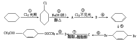 3、实验题 从环己烷可制备1,4-环己二醇的二醋酸酯,下列有关的8步反应(其中所有无机产物都已略去):