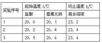 (3)假设盐酸和NaOH溶液的密度都是1g/cm3,又知中和后生成溶液的比热容c=4.18×10-3? kJ/(g·℃)。为了计算中和热,某学生实验记录数据如下: