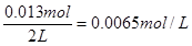 (2)NO2是生成物,平衡时生成NO2是0.013mol,浓度是