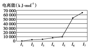 2、填空题 A、B、C、D、E五种元素,A元素的周期数、主族数、原子序数相同;B的基态原子核外有3种能量不同的原子轨道,且每种轨道中的电子数相同;C元素的电离能如图所示;D元素的价电子构型为nsnnpn+2;E是第4周期的过渡元素,血红蛋白中的E元素与BD形成的配位键比与D2形成的配位键强。E单质与BD形成的配合物E(BD)5,常温下呈液态,熔点为-20.5℃,沸点为103 ℃,易溶于非极性溶剂。