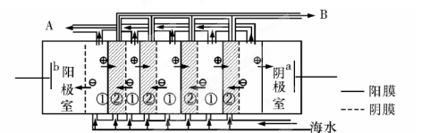 (2)电渗析法是近年发展起的一种较好的海水淡化技术,其原理如图所示。其中具有选择性的阴离子交换膜和阳离子交换膜相间排列。请回答下面的问题: