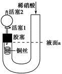4、选择题 为证明稀硝酸与铜反应产物中气体为NO,设计如图实验(实验过程中活塞2为打开状态),下列说法中不正确的是