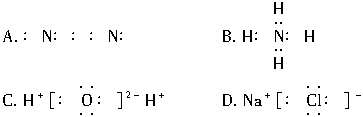 本题解析:书写共价化合物不用标电荷,C错误。而B是NH