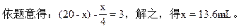 依题意得:1/3×(20-5y)=3,解之得:y=2.2mL,NO2为:20-2.2=17.8mL。