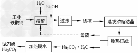 3、填空题 工业碳酸钠(纯度约为98%)中含有Ca2+、Mg2+、Fe3+、Cl-和SO42-等杂质,提纯工艺线路如下