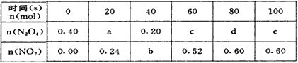 5、填空题 80℃时,将0.40mol的N2O4气体充入2L已经抽空的固定容积的密闭容器中,发生如下反应: