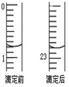 ⑵ 盐酸的体积读数:滴定前读数为?mL,滴定后读数为?mL 。