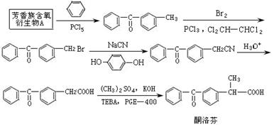 其中酮洛芬可由芳香族含氧衍生物A经以下路线合成得到: