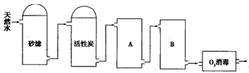 4、填空题 下图为某饮用水厂从天然水制备纯净水(去离子水)的工艺流程示意图,请回答: