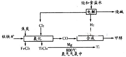 (1)已知中FeTiO3元素的化合价为+3,钛铁矿经氯化法得到四氯化钛的过程中________元素被氧化,每生产1. 9kgTiCl4消耗Cl2在标准状况下的体积为________L。